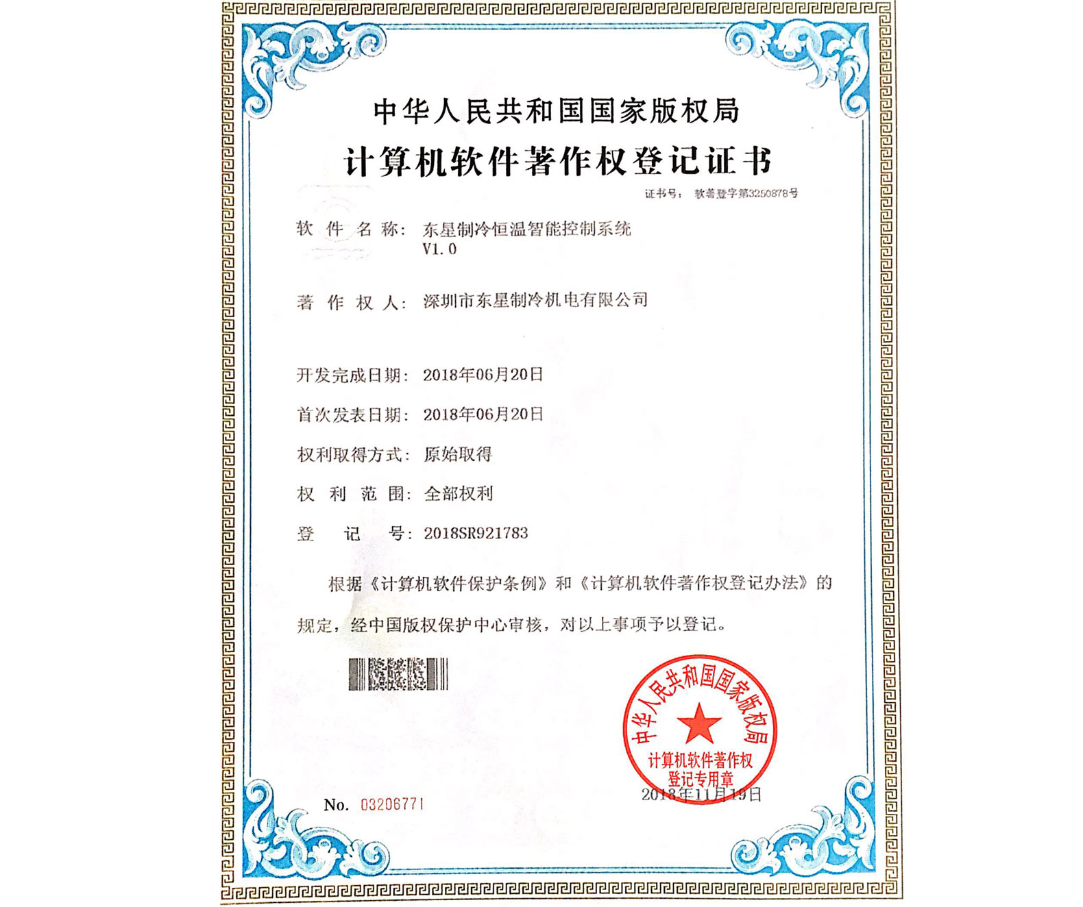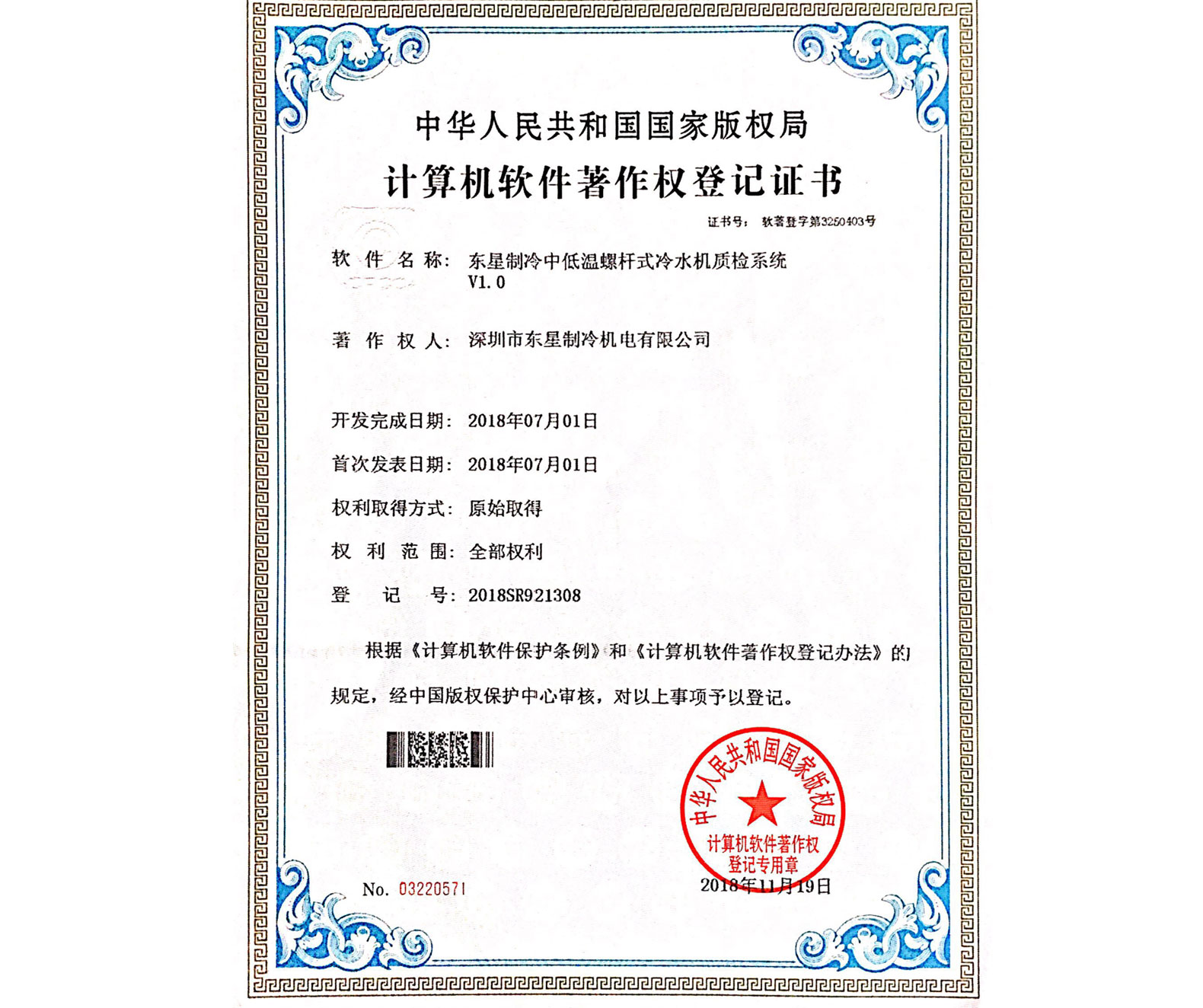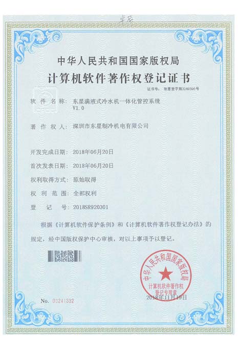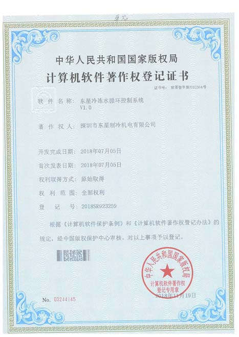 實(shí)用新型專(zhuān)利證書(shū)超低溫螺桿式冷水機(jī)