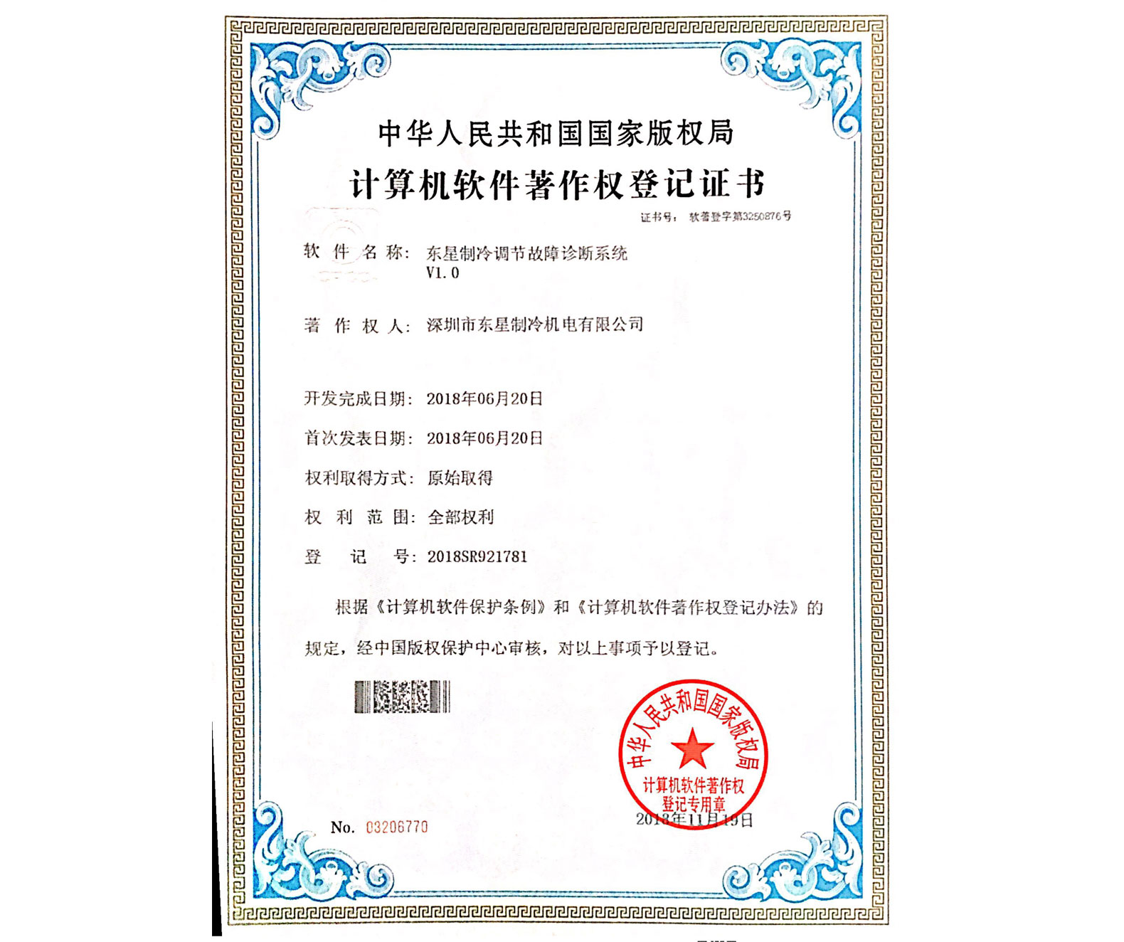 實(shí)用新型專(zhuān)利證書(shū)風(fēng)冷式螺桿冷水機(jī)