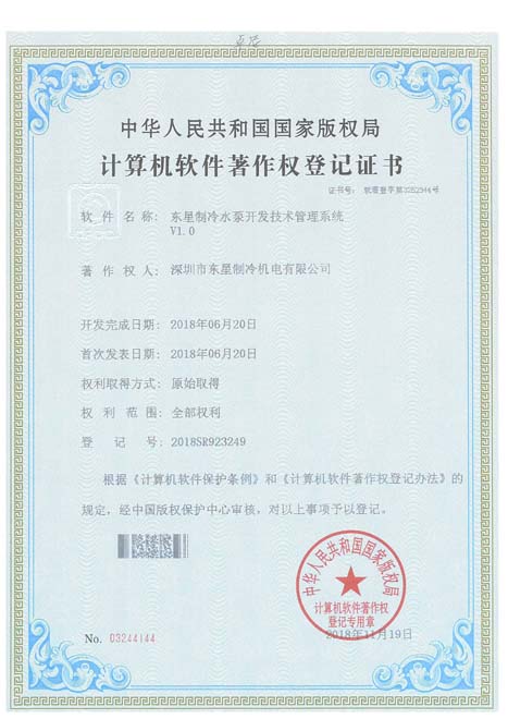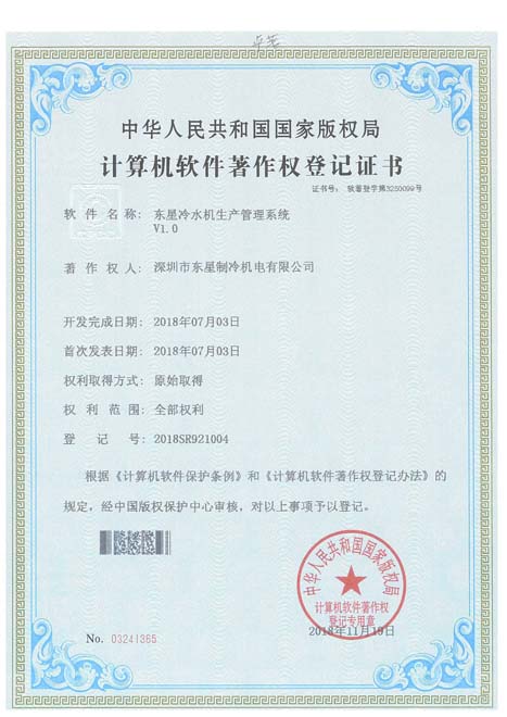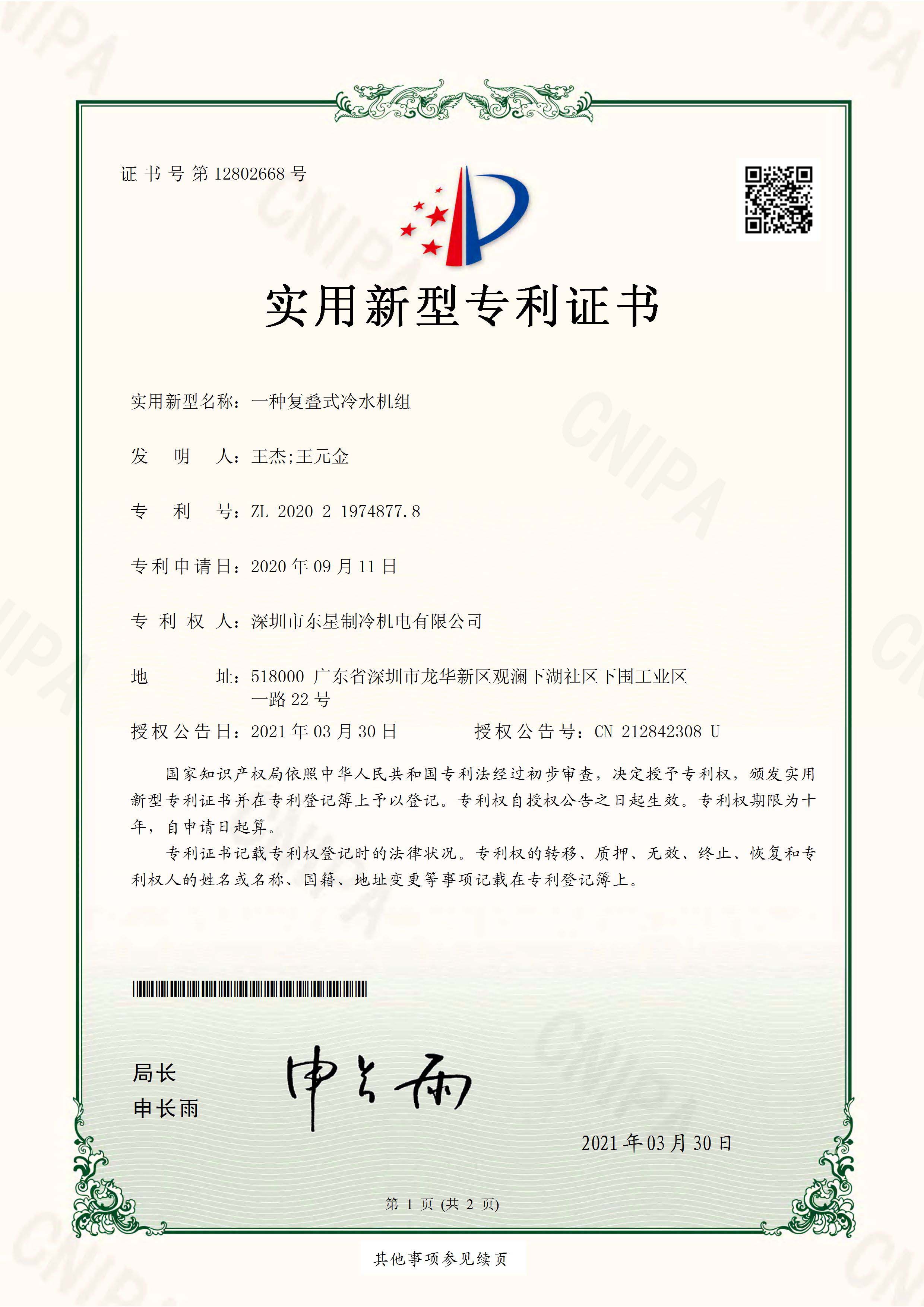 實(shí)用新型專(zhuān)利證書(shū)復(fù)疊式冷水機(jī)
